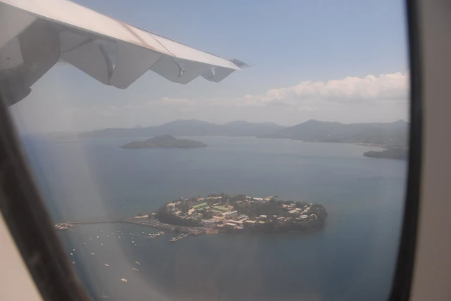 Le Rocher de Dzaoudzi lors de l'approche vers l'aéroport