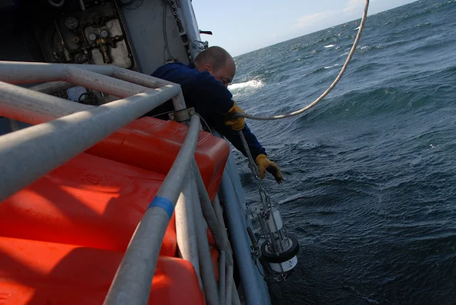 Une sonde est descendue pour noter la salinité de l'eau, sa température, sa turbidité.