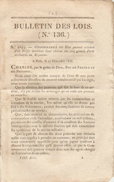 Bonaparte, alors Premier consul, crée les préfectures maritimes en 1800. À cette époque, Cherbourg est rattaché au 2earrondissement, dont le chef-lieu est Le Havre (Seine-Maritime).