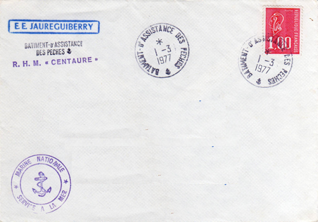 | "Les plis ont été réalisés avec la complaisance de l'agent postal du RHM Centaure et pour un brin d'humour il s'appelait Cheval …