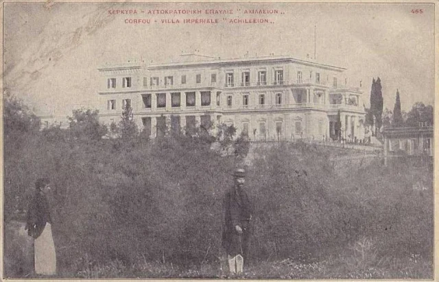 La prise de l’Achilléion fut une opération qui vaut la peine d’être contée. Dès que les premières chaloupes arrivèrent sur le quai de Corfou, un lieutenant de vaisseau, accompagné de deux matelots torpilleurs mineurs et d’une douzaine d’Alpins, fut chargé d’aller en auto jusqu’à l’Achilléion et d’occuper la villa de l’empereur Guillaume, dont le petit port, assurait-on, était particulièrement accueillant aux sous-marins allemands. Trois autos franchirent rapidement les dix kilomètres et, vers 4h30 du matin, stoppèrent devant les grilles impériales.