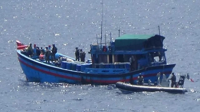 Dans le cadre de l’opération UATIO, les Forces armées en Nouvelle-Calédonie (FANC) arraisonnent régulièrement des embarcations vietnamiennes qui viennent pêcher en toute illégalité dans les eaux néo-calédoniennes. Seulement, les moyens de la Marine nationale y sont parfois limités, ce qui a donné lieu, par exemple, à un épisode rocambolesque en janvier dernier.En effet, deux des trois « blue boats » vietnamiens interceptés plus tôt et conduits à Nouméa par le patrouilleur P400 « La Moqueuse » et le Bâtiment multimissions (B2M) « D’Entrecasteaux », réussirent à se faire la malle… Et il fut impossible de les rattraper : les deux navires de la Marine nationale étant théoriquement en mesure de le faire (c’est à dire qui n’étaient pas en arrêt technique) ayant été immobilisés à cause d’avaries. Mais l’on assura à l’époque que la Royal Australian Navy (RAN) se chargerait de traquer les embarcations en question.