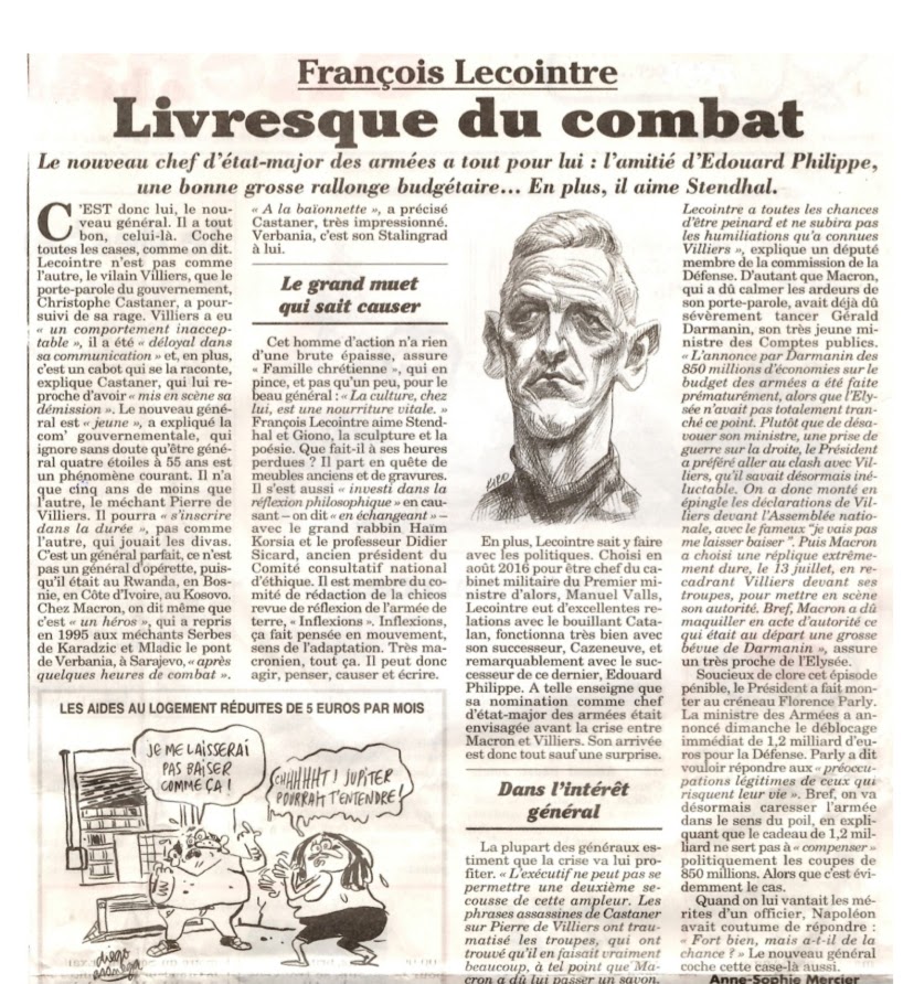 Le chef d’état-major des armées, François LECOINTRE est homme de baroud et de réflexion, pour preuve ce témoignage vivant que m’a adressé une amie concernant un fait d’armes qui ne manque pas de panache.