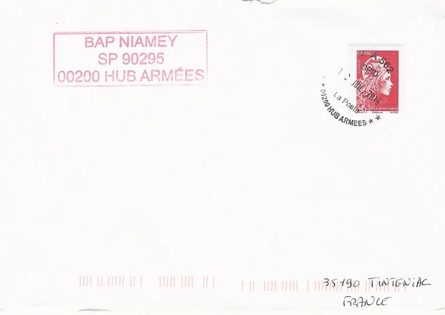Le premier avec un TàD AP SPID 148 Sodexo La Poste 00200HUB ARMEES en provenance du Tchad