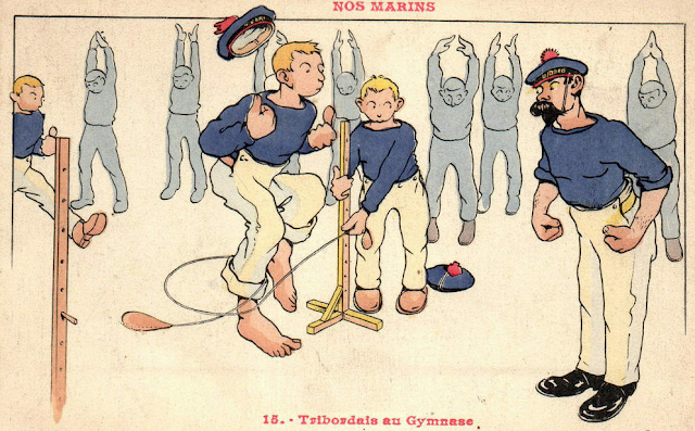 il note l'extraordinaire résistance des gabiers qui, par tous les temps fournissent un travail athlétique dans la mâture des navires.