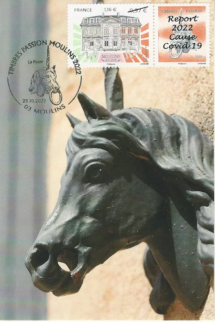 Le timbre MOULINS ALLIER - TIMBRES-PASSION a été émis à 500 000 exemplaires le 30 octobre 2020 pour la manifestation TIMBRES-PASSION qui a été annulée et reportée du 28 au 30 octobre 2022.