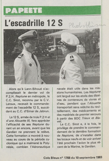 Le 29 juillet a été une date importante à plusieurs titres pour l'aviation de patrouille maritime : la dissolution officielle de la dernière formation armée de Neptune P2V7 en métropole — la flottille 25 F -, le départ du C.A. Ghesquière qui commandait la Patmar et la prise de fonction du nouveau commandant de l'aviation de patrouille maritime, le C.A. Bardon.