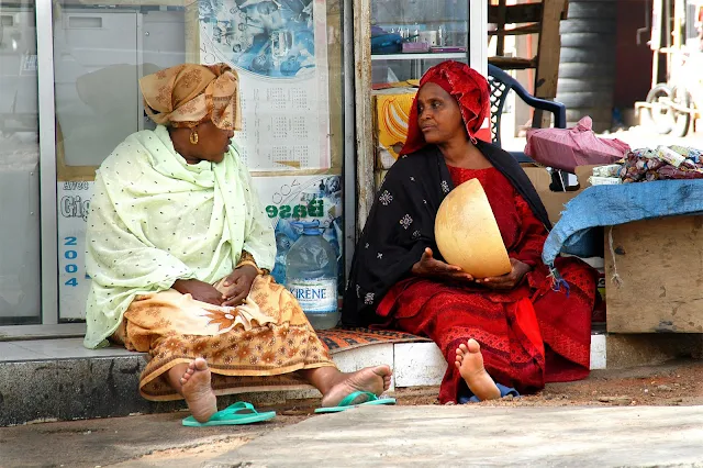 Les femmes sont chargées de débarquer les pirogues et d'entasser le sel sur les bords pour le sécher et le blanchir au soleil. Tous s'enduisent le corps de beurre de karité pour se protéger de la salinité corrosive. Le sel est destiné aux conserveries de poisson ou exporté.